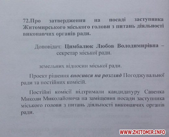 В проекте решения действительно нет фамилии, но на прошлой сессии на эту должность Цимбалюк предлагала кандидатуру Николая Савенко. На этой сессии в предложениях согласительного совета также фигурирует фамилия Савенко.