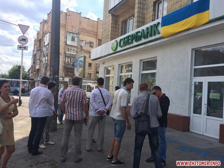 «У такий великий день хотілось ще раз нагадати, що державний прапор для багатьох поколінь українців назавжди залишиться беззаперечним символом національної єдності. Тому ми вирішили провести таку акцію. Вона є мирною, ми нічого не ламали. Відтепер «Сбербанк» виглядає хоч трохи по-українськи», – зазначив заступник голови міської організації «Свободи» Олег Черняхович.