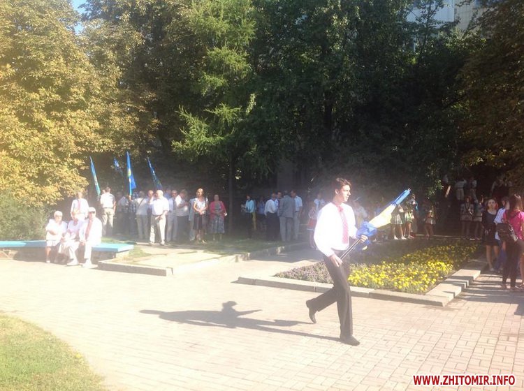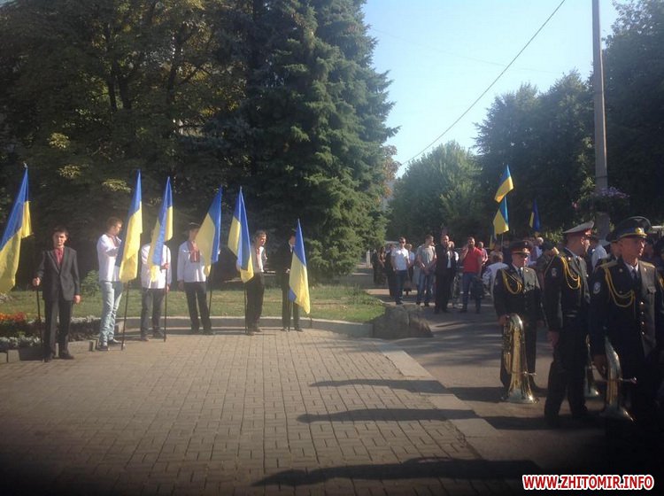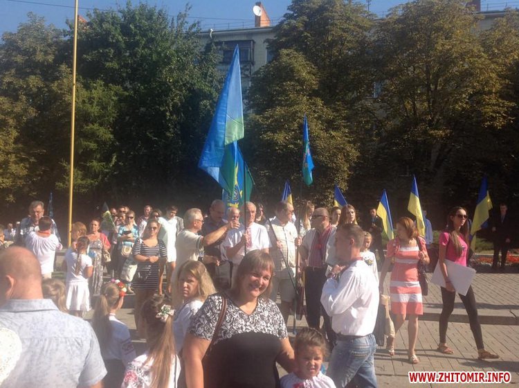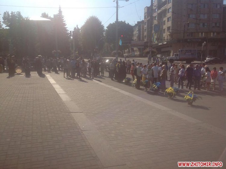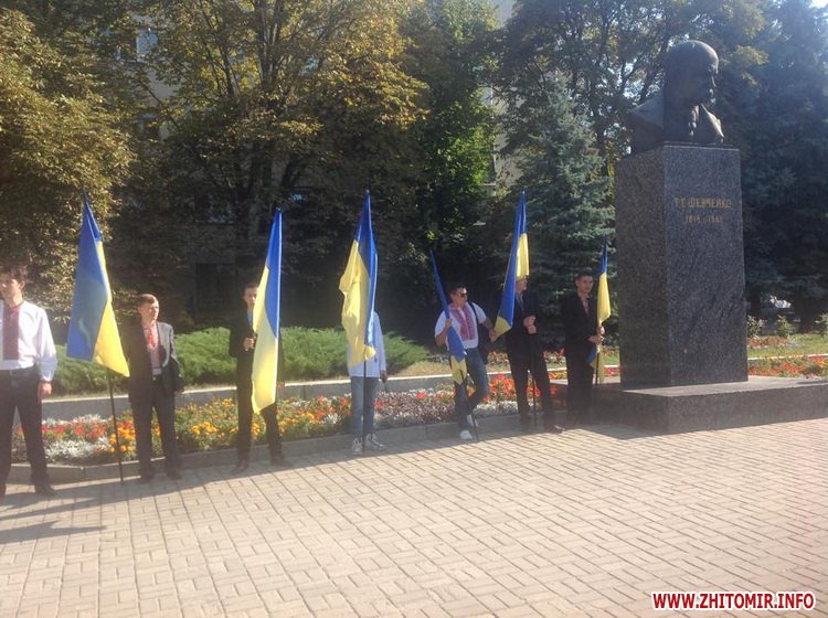 Заходи почнуться із дефіле військового оркестру біля пам'ятника Шевченку. Звідти по вулиці Великій Бердичівській буде організовано символічну ходу до майдану Корольова. О 10.30 на майдані діти утворять «живий ланцюг» навколо уквітчаної України.