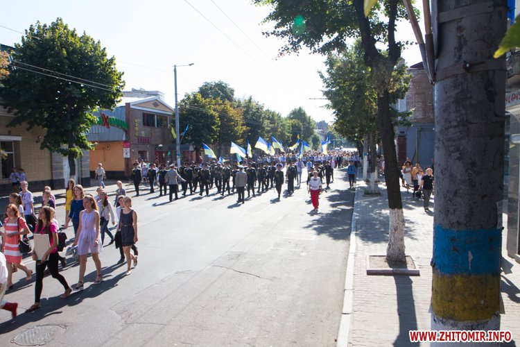 Кількасот людей зібралися о 10-й ранку біля пам’ятника Тарасу Шевченку і пройшли по Великій Бердичівській до майдану Корольова.