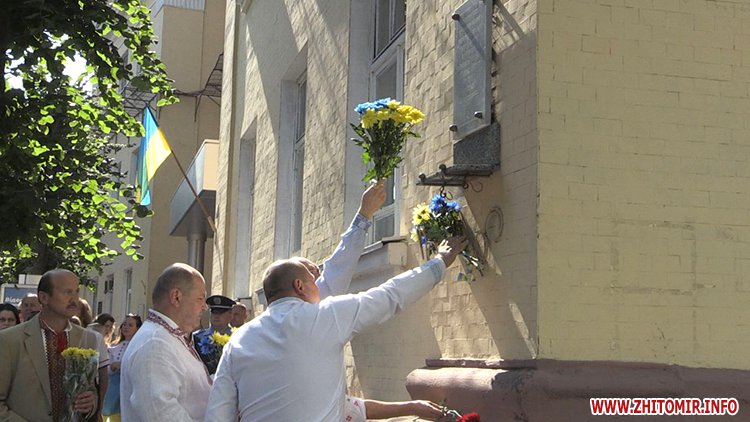 О 10:00 керівники міста і області поклали квіти до пам’ятника Тарасу Шевченку. Після цього житомиряни святково ходою рушили до майдану Корольова. Очолювали колону вихованці хореографічного ансамблю «Сонечко», які несли великий прапор України.