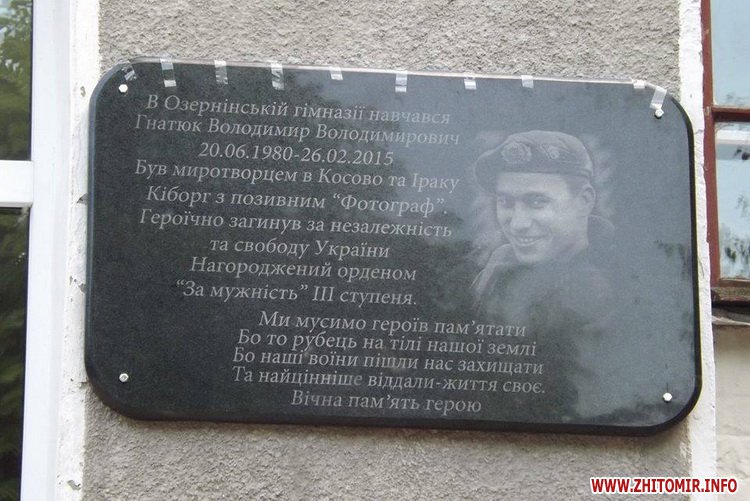 Житомирянин Володимир Гнатюк снайпер 90-го окремого десантного-штурмового батальйону 81-ї десантно-штурмової бригади з позивним «Фотограф», з миротворчою місією побував у Косово та Іраку, але 26 лютого загинув на рідній Україні від рук російських військових.