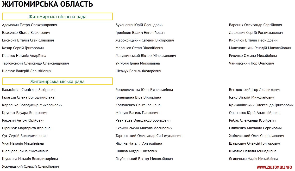 У списку кандидатів до Житомирської міської ради вже 31 людина. До попереднього списку з 28 осіб додалися: Опанасюк Юрій Андрійович, Якубинський Віктор Миколайович та Сліпченко Михайло Сергійович. Останній до недавнього часу був членом ВО «Свобода».