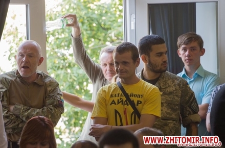 Михайло Сліпченко (у жовтій футболці) на сесії Житомирської міської ради 6 серпня 2015р.