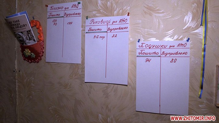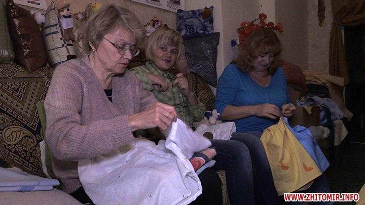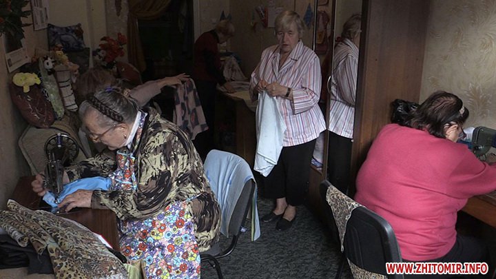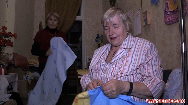 Їм нема часу на хатню роботу, бо цілими днями зайняті шиттям. Житомирські пенсіонерки вже кілька місяців поспіль із дня у день шиють різнобарвні сімейки військовим на передову. Тепер окрім спідньої білизни взялися за пошиття подушечок і рукавиць для танкістів, а ще в’яжуть шкарпетки.