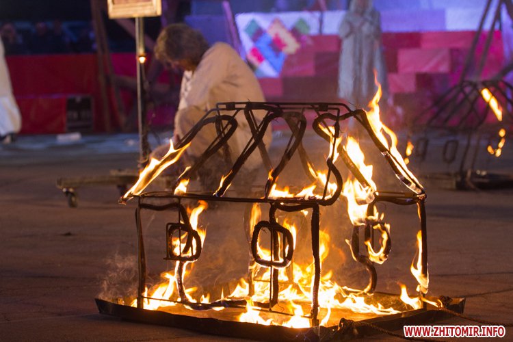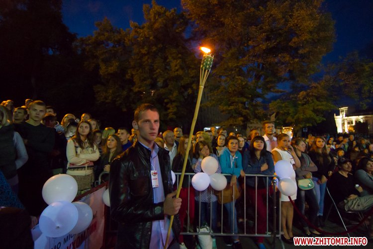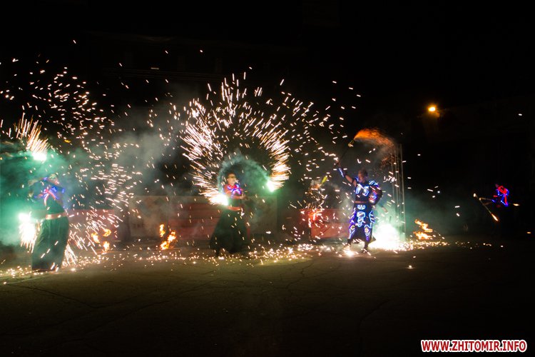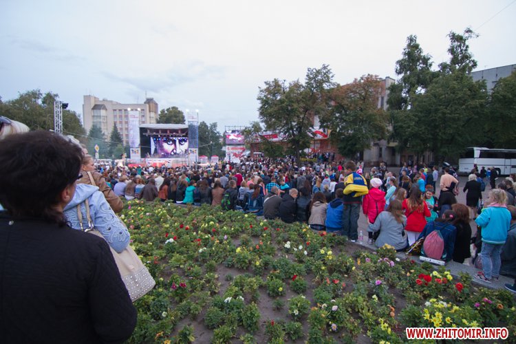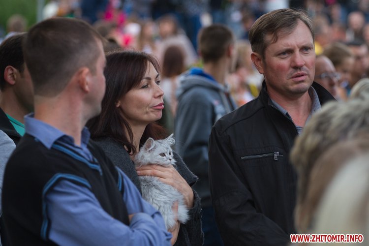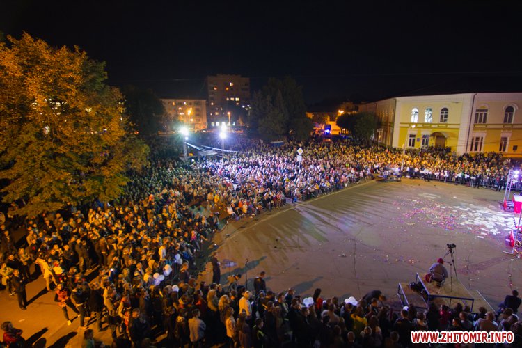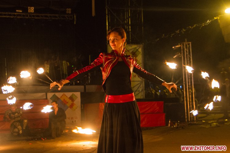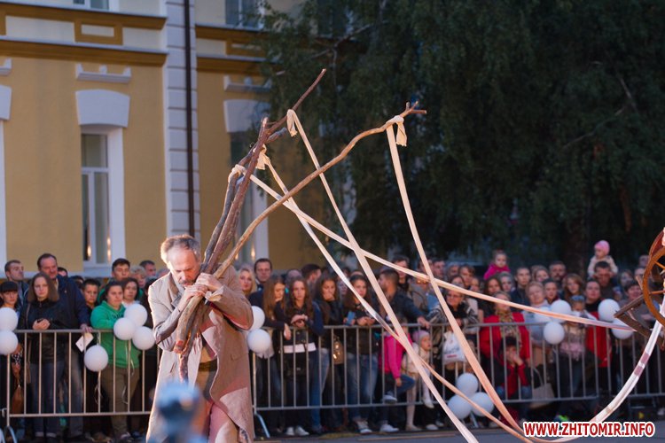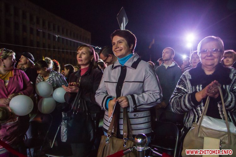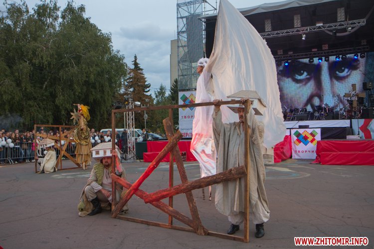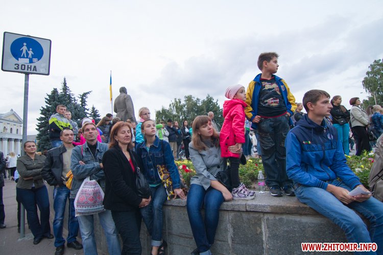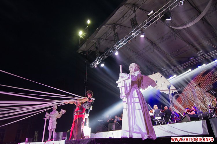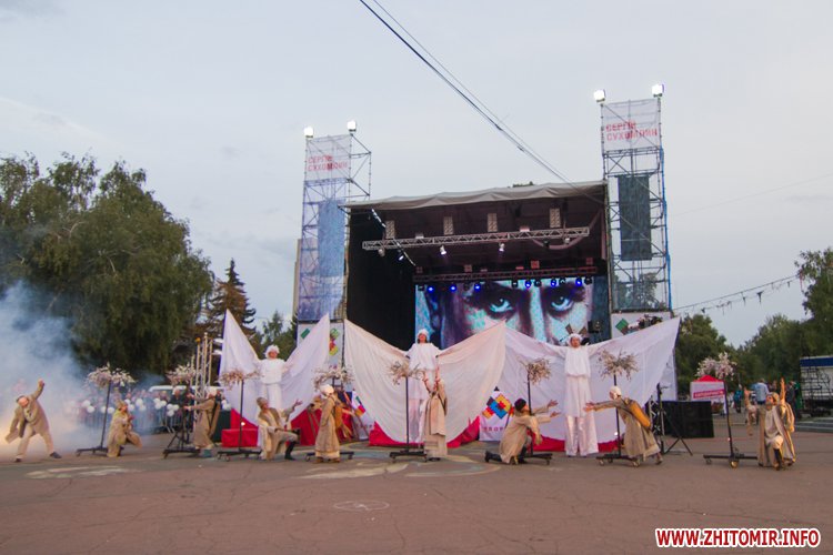 Несколько тысяч житомирян собрались на площади Королева, чтобы посмотреть спектакль Львовского академического духовного театра «Воскресение» по мотивам произведения Тараса Шевченко, выступления актеров Житомирского драмтеатра и акробатов, послушать один из лучших европейских оркестров Lords оf the Sounds и певицу Джамалу.