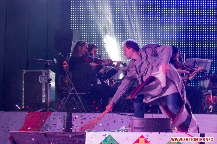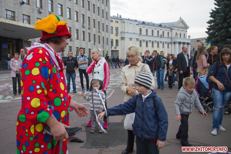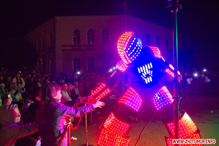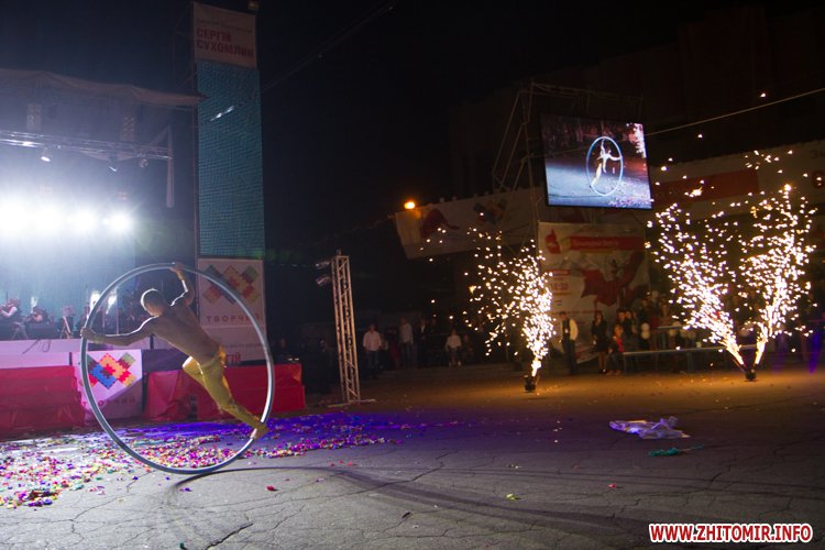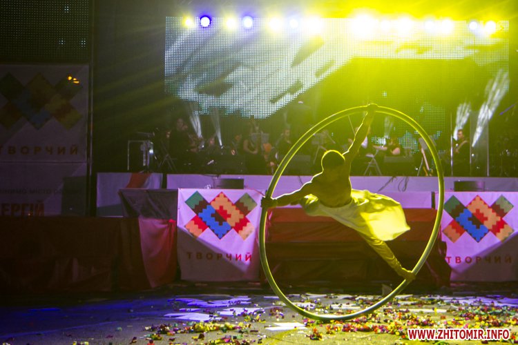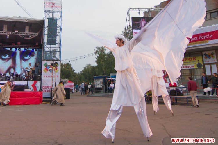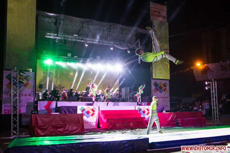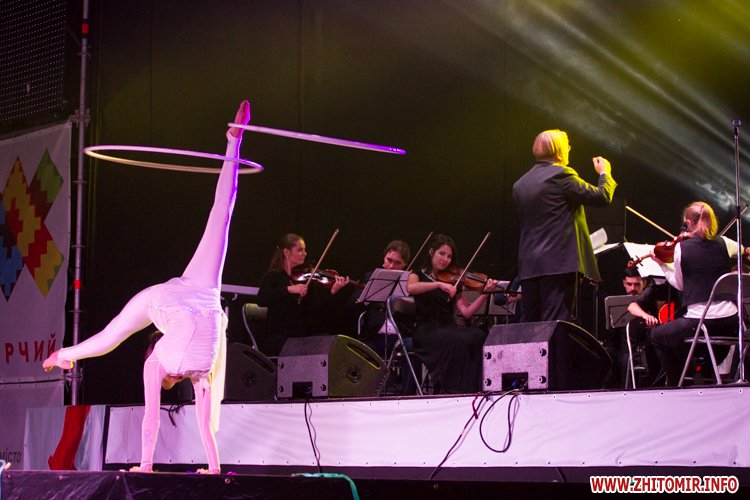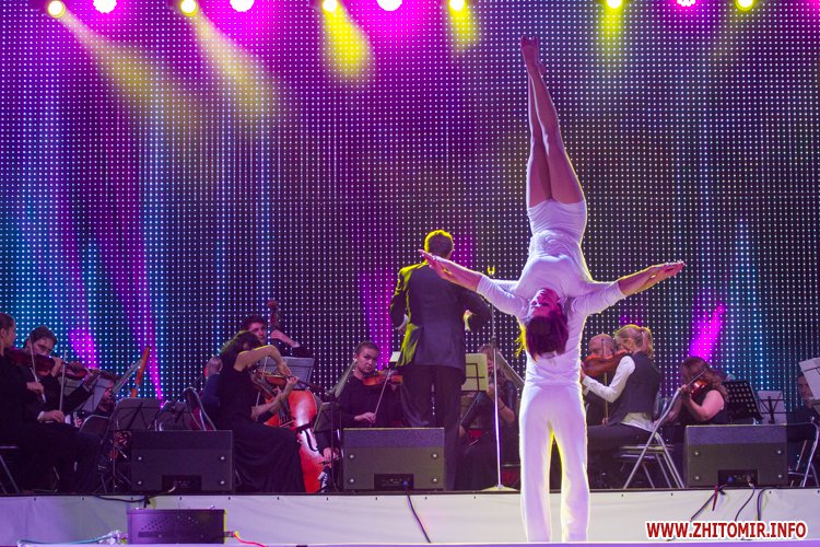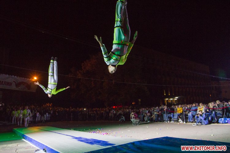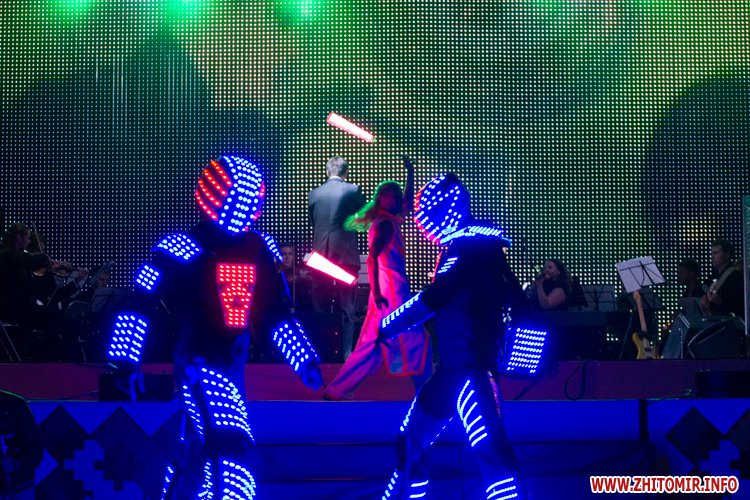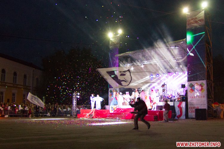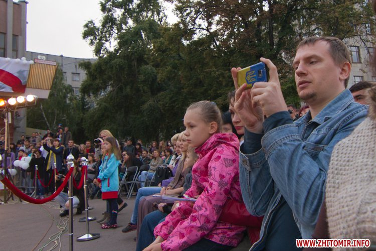 Несколько тысяч житомирян собрались на площади Королева, чтобы посмотреть спектакль Львовского академического духовного театра «Воскресение» по мотивам произведения Тараса Шевченко, выступления актеров Житомирского драмтеатра и акробатов, послушать один из лучших европейских оркестров Lords оf the Sounds и певицу Джамалу.