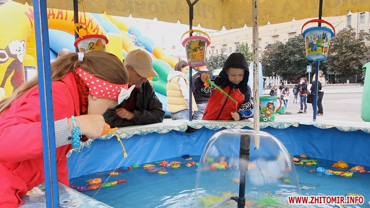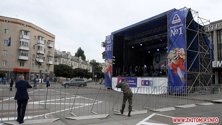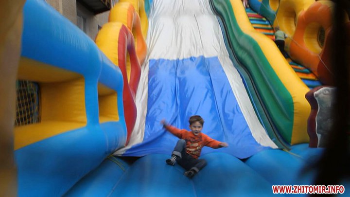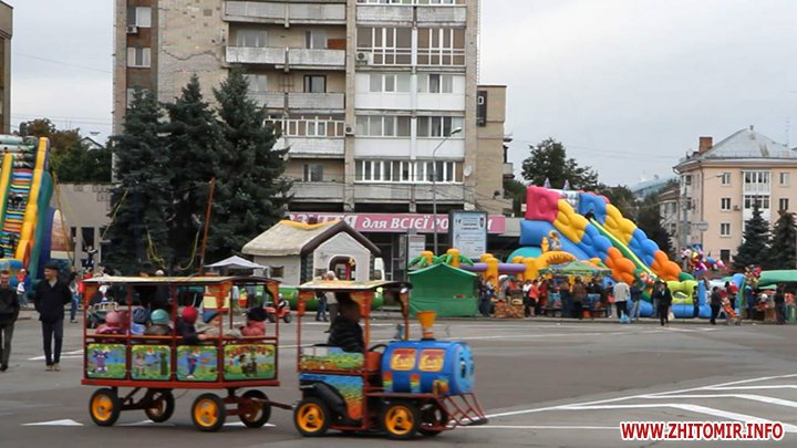 У центрі Житомира йде підготовка до вечірнього святкування Дня міста. На майдані Соборному розгорнули “батутне містечко”, де маленькі житомиряни можуть розважитись на атракціонах та поласувати солодкою ватою.