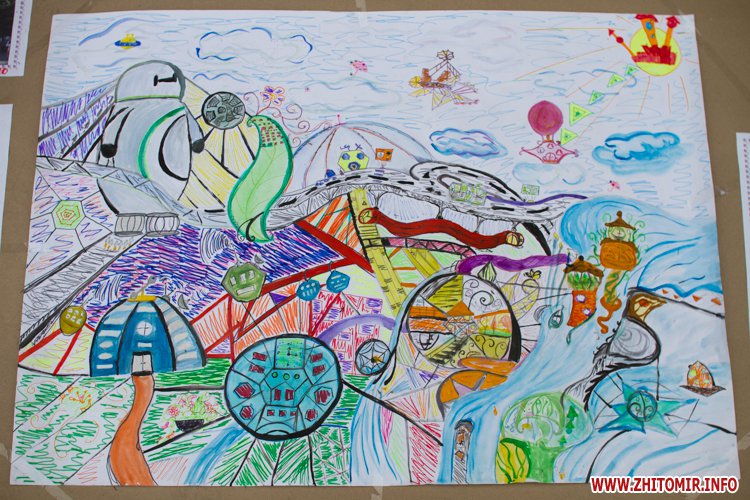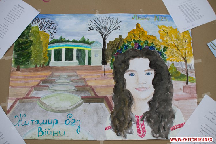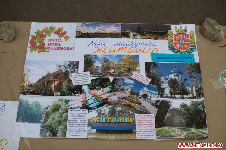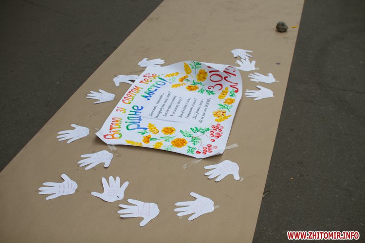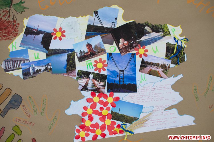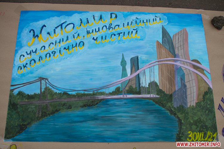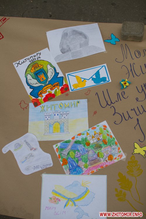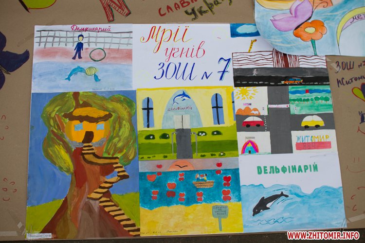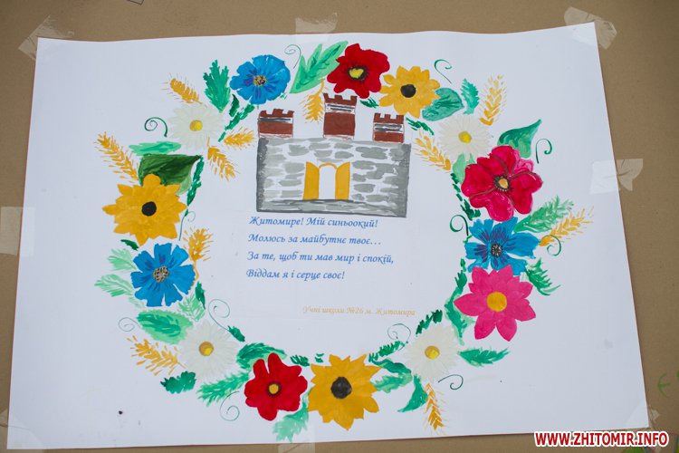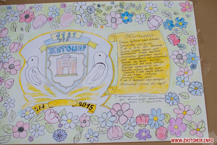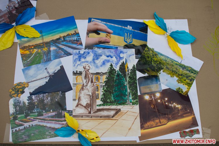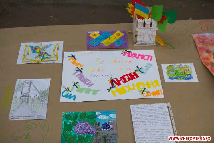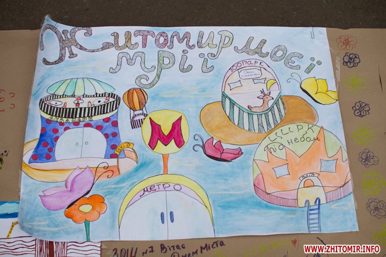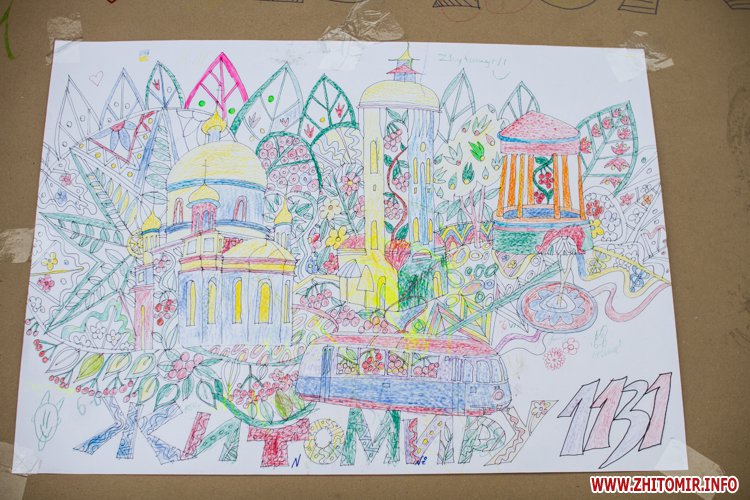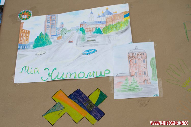 У рамках соціально-патріотичної акції «Мій майбутній Житомир» учні шкіл міста малювали своє бачення майбутнього рідного міста та та писали побажання з нагоди дня народження.