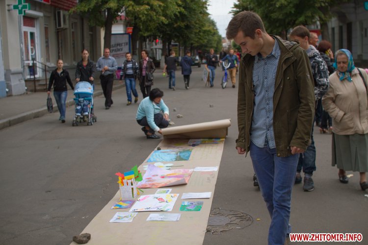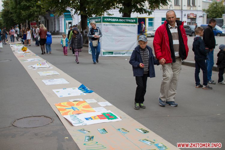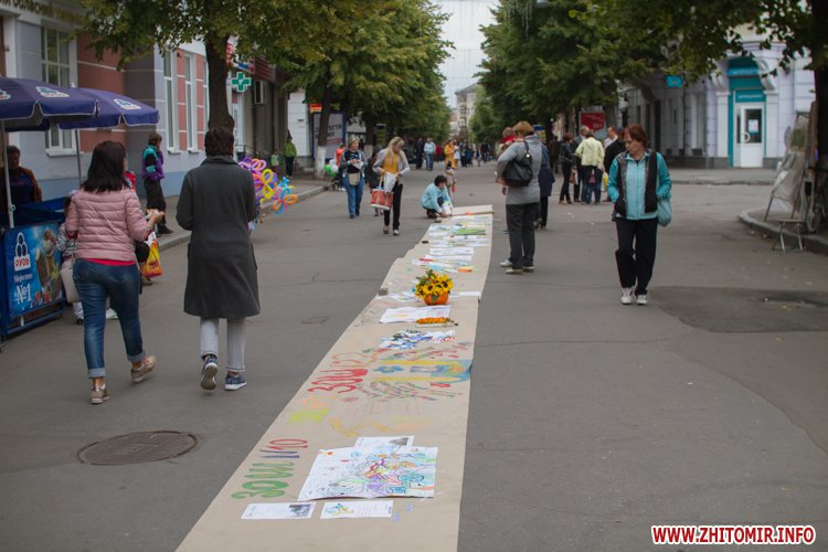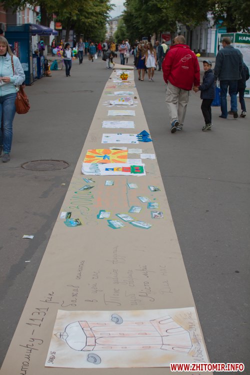 12 вересня у День міста на єдиній житомирській пішохідній вулиці Михайлівській розгорнули кількаметровий ватман з малюнками дітей про майбутнє.