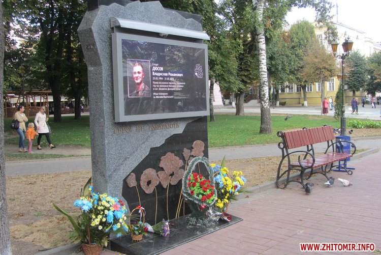 В Житомире еще летом прошлого года на постаменте, где стоял памятник Ленину, повесили баннер с фотографиями героев Небесной сотни и погибших во время АТО бойцов.