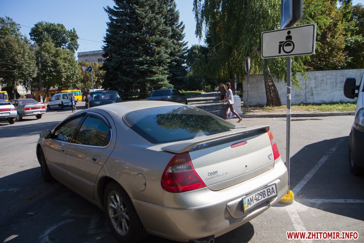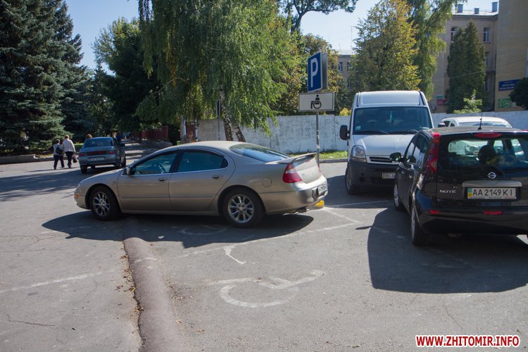 Розміщення на таких місцях інших транспортних засобів, ніж ті, що належать людям з інвалідністю, є порушенням передбаченим ч. 2 ст. 152-1 Кодексу України про адміністративні правопорушення. Однак, дотримання цієї статті закону в Житомирі не контролюють.
