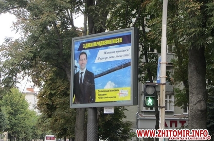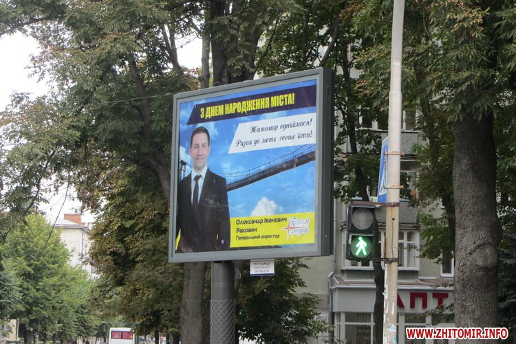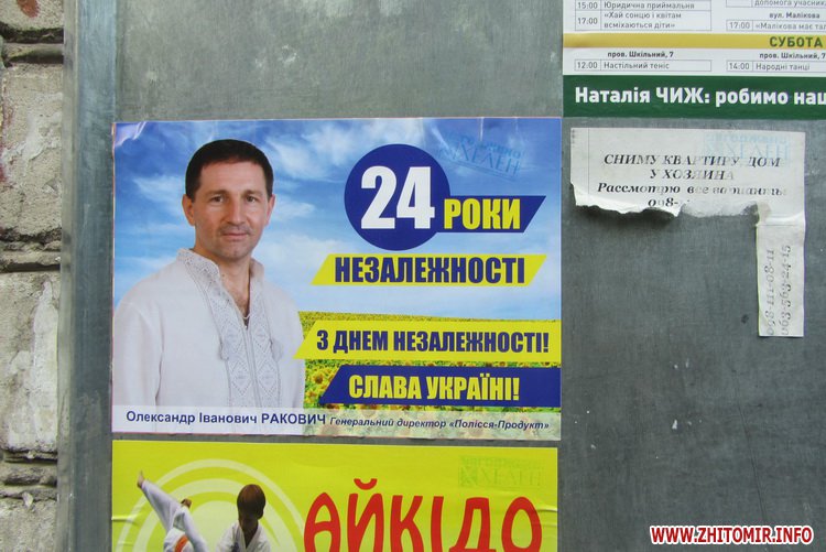 Нагадаємо, керівник Житомирської міської організації Радикальної партії Сергій Зайцев повідомив, що з 17 вересня вийшов з партії і на вибори не йде. Олександр Ракович з інформаційних стендів біля під’їздів та білбордів вітав житомирян з Днем Незалежності та Днем міста.