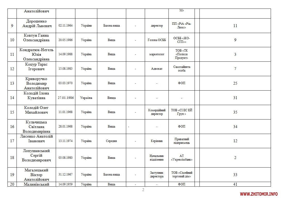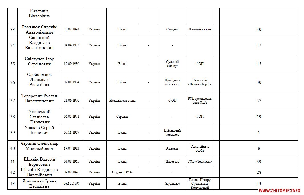 В розпорядженні Житомир.info є список 42 кандидатів до міської ради від РПЛ.