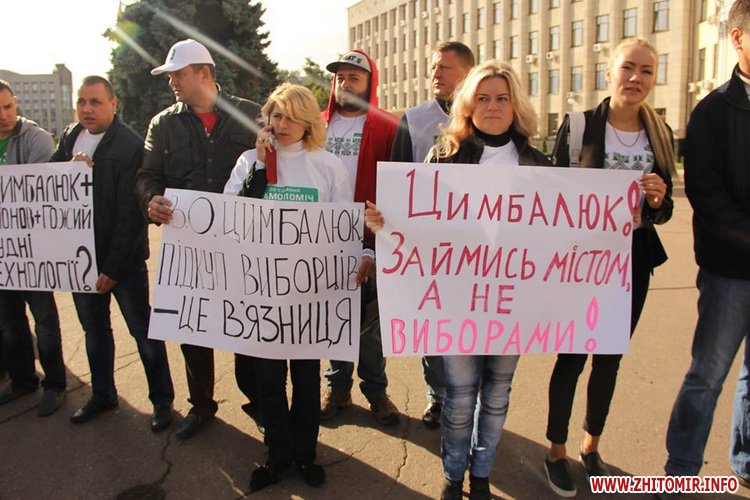 Зайнятися проблемами міста, а не виборами закликає «Об’єднання «Самопоміч» виконуючу обов’язки мера Житомира. З вимогою припинити використання «брудних технологій» у передвиборчій кампанії волонтери «Самопомочі» влаштували навпроти будівлі міської ради мовчазний пікет.