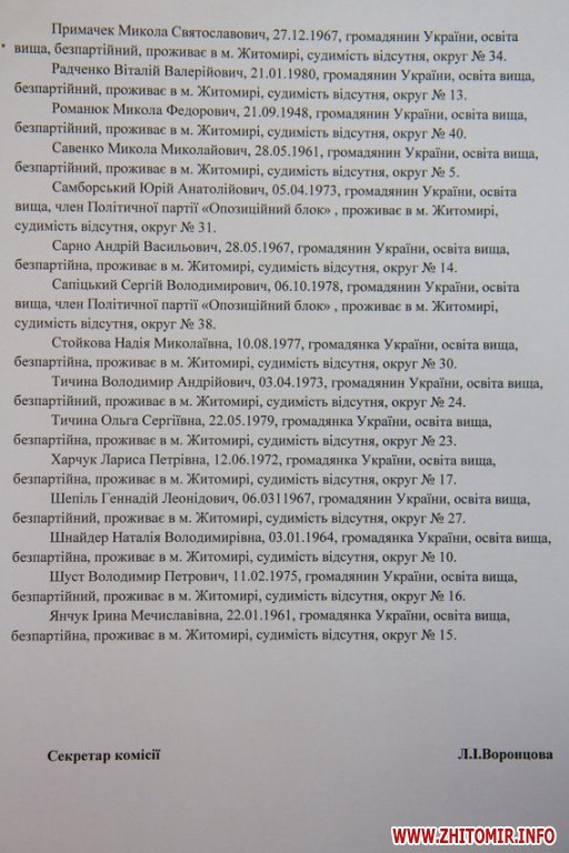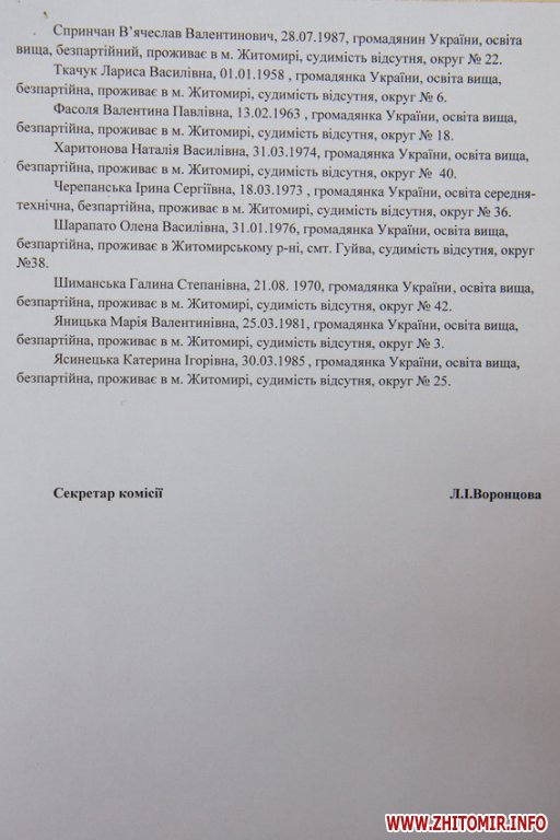 Об этом Житомир.info сообщила председатель горизбиркома Тамара Яремчук.