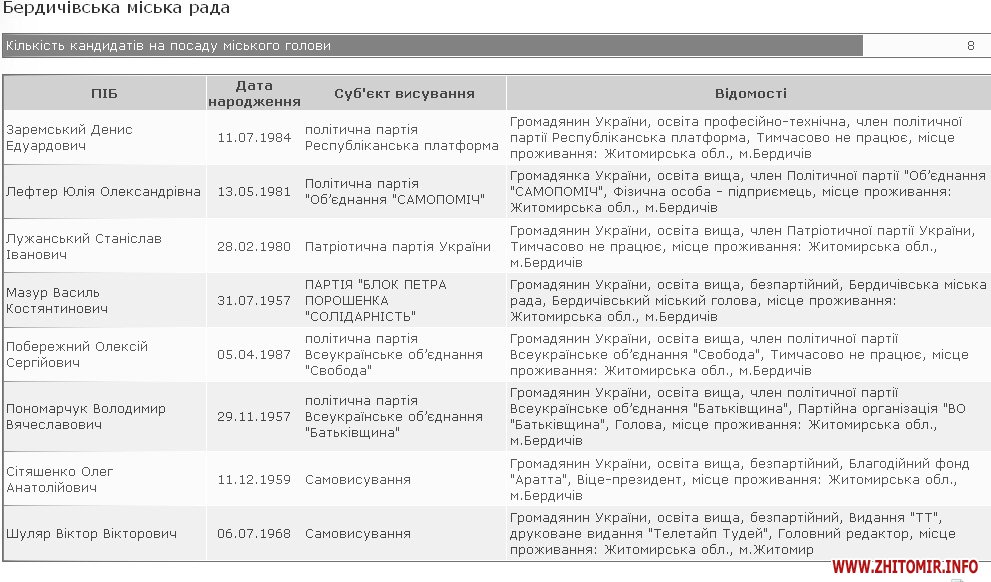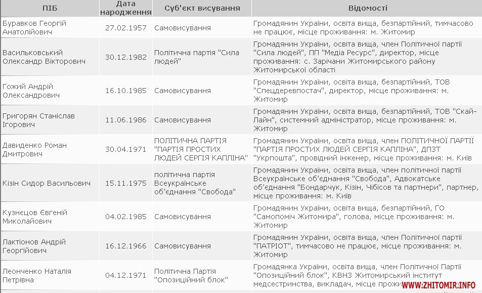Кандидати на посаду мера Житомира