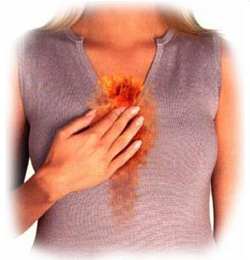 Весьма неприятное ощущение жжения за грудиной, которое возникает сразу после приема пищи, в особенности если сразу прилечь. Человек может испытывать такой дискомфорт от нескольких минут до недели (!).
