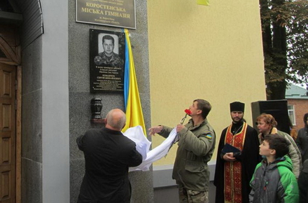 13 жовтня на приміщенні Коростенської міської гімназії було відкрито меморіальну дошку загиблому герою АТО Сергію Романчуку.