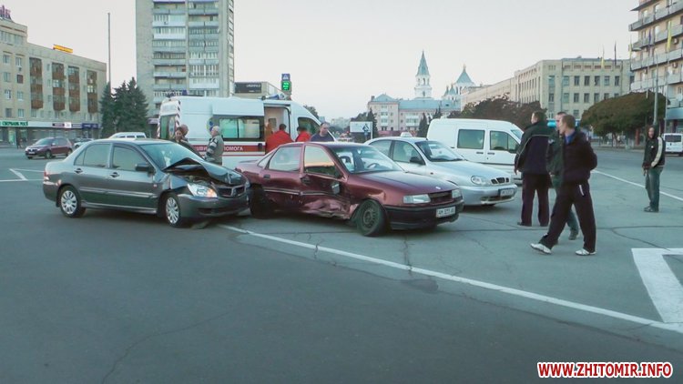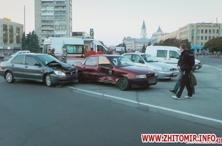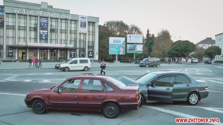 14 октября около 17.30 на площади Соборной в Житомире произошло ДТП при участии двух легковых автомобилей.