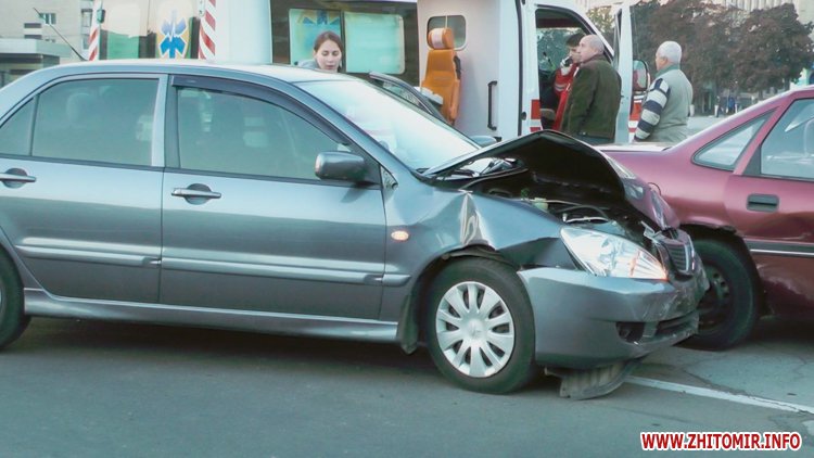 Как сообщал Житомир.info,14 октября на перекрестке улиц Леси Украинки и Щорса столкнулись минивэн и хетчбэк.