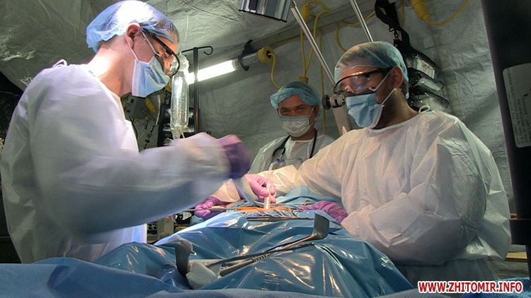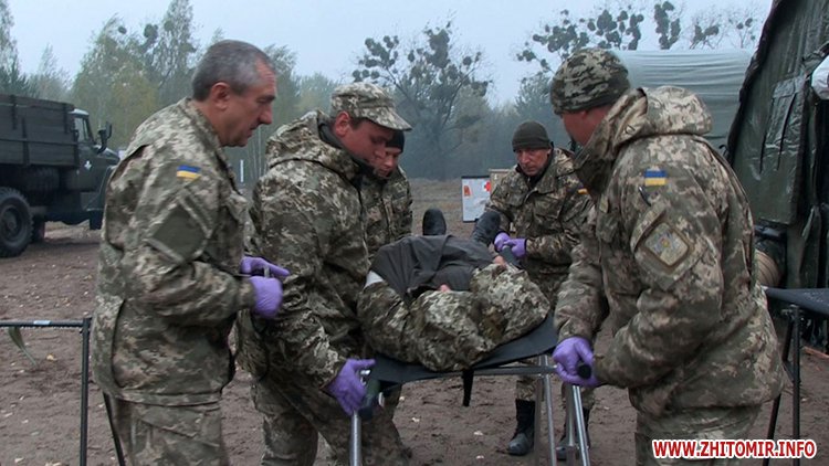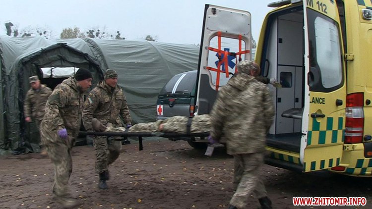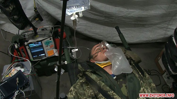 З умовного поля бою поранених доставляють до польового шпиталю. Його у серпні українським десантникам подарував американський уряд. Тут важкопораненим нададуть невідкладну допомогу і навіть можуть провести невідкладну операцію перед відправкою у шпиталь. У чотирьох наметах одночасно можуть працювати три десятки лікарів. Вони якраз завершують своє двотижневе злагодження перед від’їздом у зону АТО.