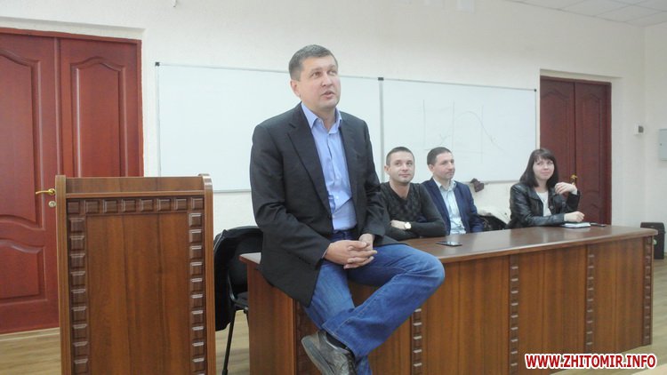 Із студентами Житомирського державного технологічного університету зустрілися представники Радикальної партії Олега Ляшка – народний депутат, член фракції Радикальної партії в Парламенті Ігор Попов, керівник житомирської територіальної організації РПЛ Ілля Смичок, генеральний директор ТОВ ТК «Полісся продукт» Олександр Ракович та заступник керівника юридичного відділу «Полісся продукт» Ірина Могильницька.