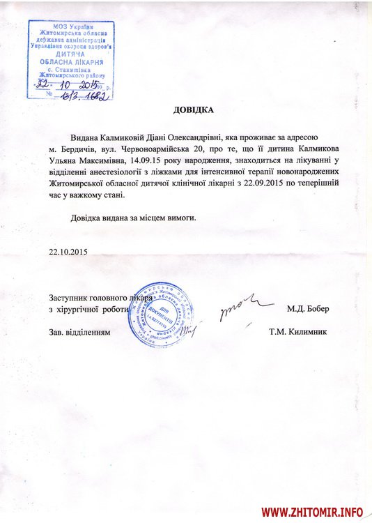 Один день її перебування в реанімаційному відділенні Житомирської обласної дитячої лікарні обходиться від 500 до 2 тисяч гривень, - розповіла Житомир.info мама новонародженої Діана.