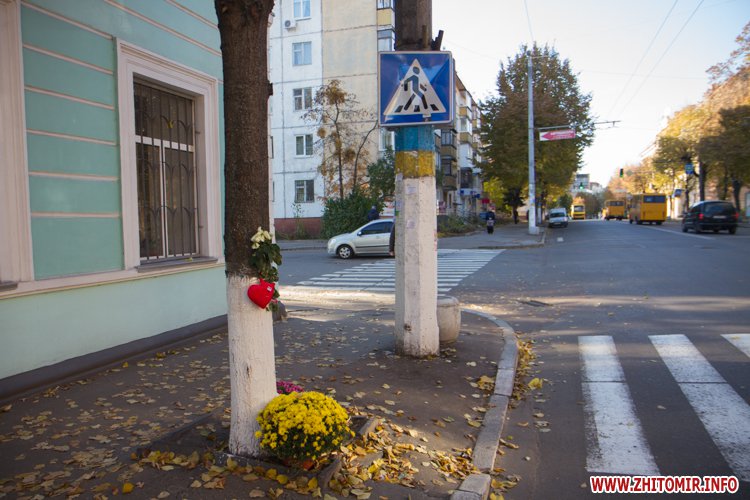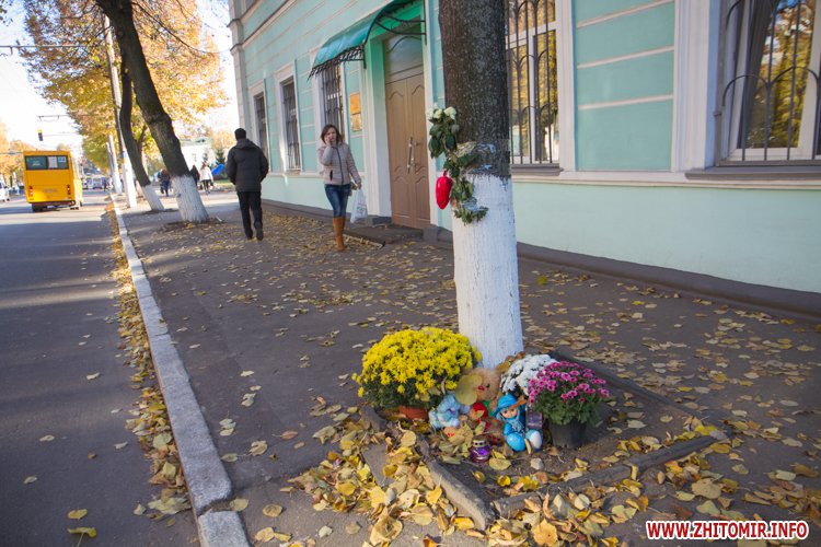 Их житомиряне выкладывают возле дерева недалеко от рокового пешеходного перехода, где маршрутка сбила мать с ребенком, как напоминание об ужасной трагедии. Почти ежедневно здесь убирают приувядшие цветы - очевидно, родственники, - и ставят свежие.