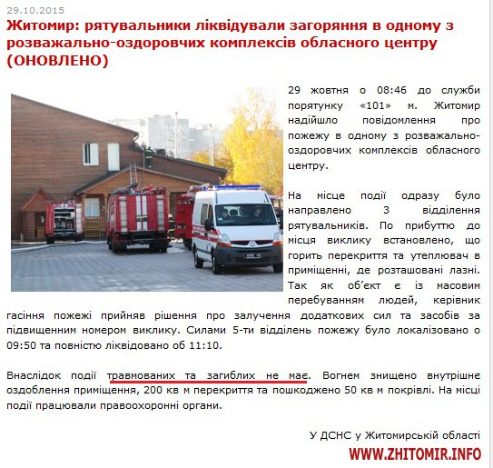 Як повідомляв Житомир.info, вранці 29 жовтня власниця готельно-оздоровчого комплексу «Волна» Євгенія Волинець напала на знімальну групу Житомир.info під час зйомки сюжету про пожежу. Міліція розпочала кримінальне провадження за ст. 171 (Перешкоджання журналістській діяльності) Кримінального кодексу України.