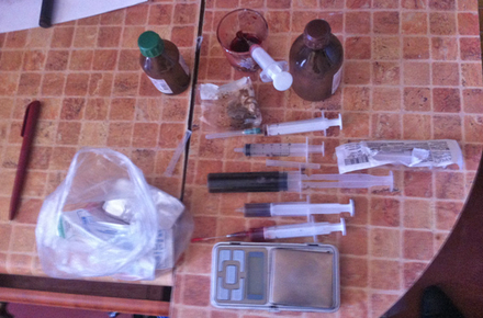 Окрім того, під час огляду оселі міліціонери виявили та вилучили ампули «Димедролу», пляшки та шприци з прозорою та коричневою рідиною, ваги та інше приладдя для виготовлення наркотичних засобів. Усе вилучене направлене на дослідження до Науково-дослідного експертно-криміналістичного центру при УМВС.
