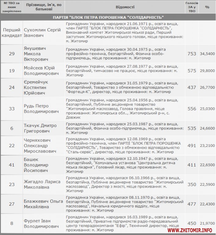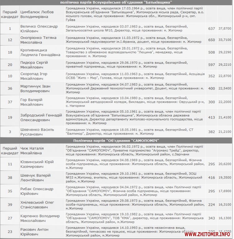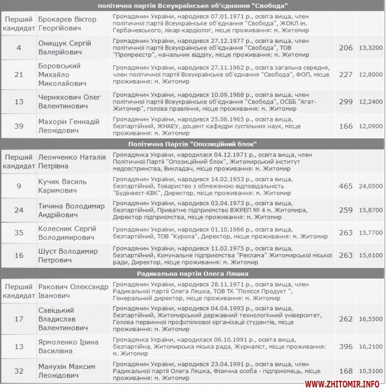 Как сообщал Житомир.info, 3 ноября городская избирательная комиссия огласила результаты выборов депутатов Житомирского горсовета.