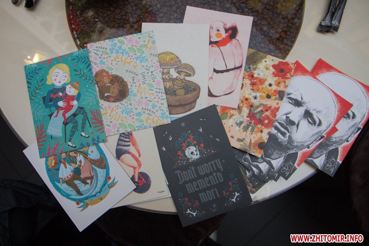 - Та навіть якби і з вишиванками. Вона просто не здатна вижити. І ось тут ми можемо почати говорити про Житомир – «Добра листівка» в Житомирі досі не продається. Основна частина наших точок продажу – це кав’ярні-книгарні. Де така в Житомирі? Щоб у нас були кав’ярні-книгарні треба, щоб у наших кав’ярнях була делегована одна особа, яка би стежила, щоб не крали асортимент. Ми трошки пробували в «Брамі» продаватися, але «Брама» не пристосована для цього, і взагалі ніхто не пристосований. І взагалі люди не розуміють – навіщо їм це робити.