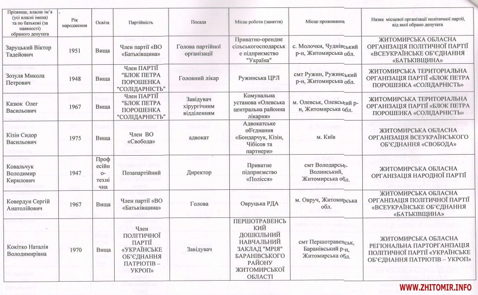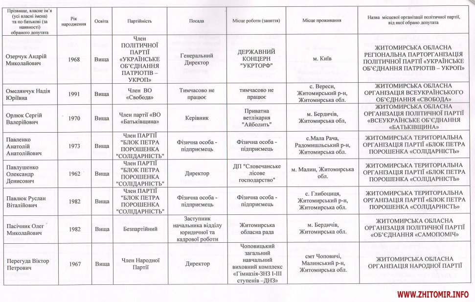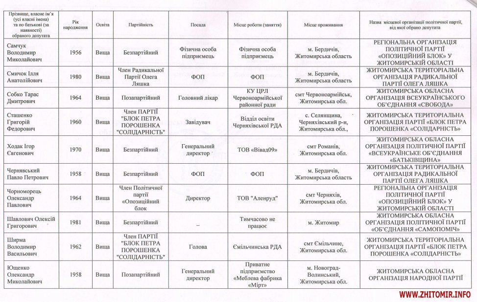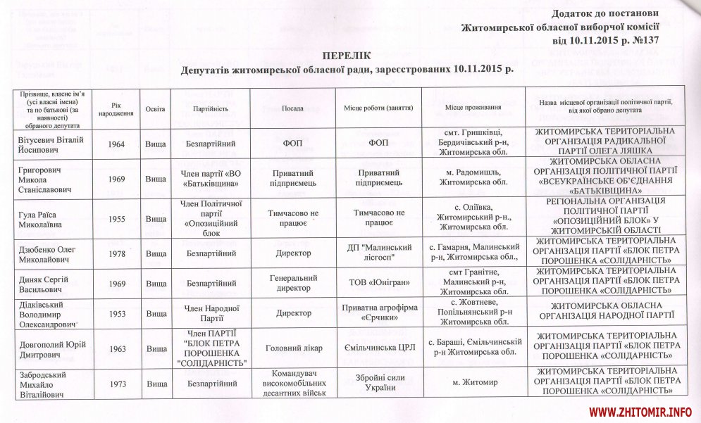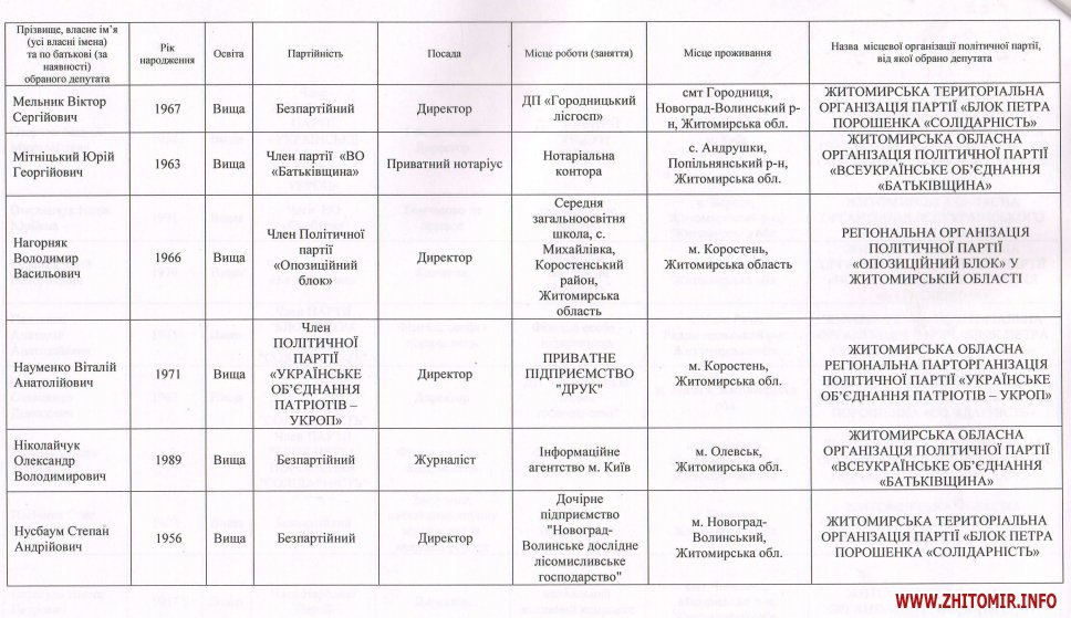 Як повідомляв Житомир.info, на першій сесія новообраної обласної ради 12 листопада депутати будуть обирати голову облради.