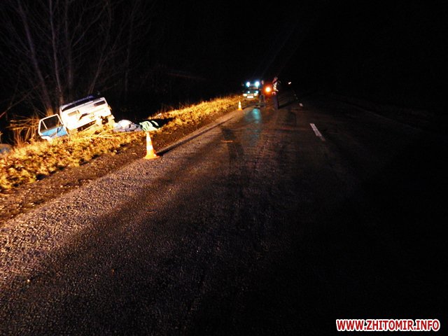 13 листопада о 00:02 до служби порятунку «101» надійшло повідомлення про те, що в Любарському районі на 76 км траси Житомир-Чернівці поблизу с. Кутище сталася дорожньо-транспортна пригода.