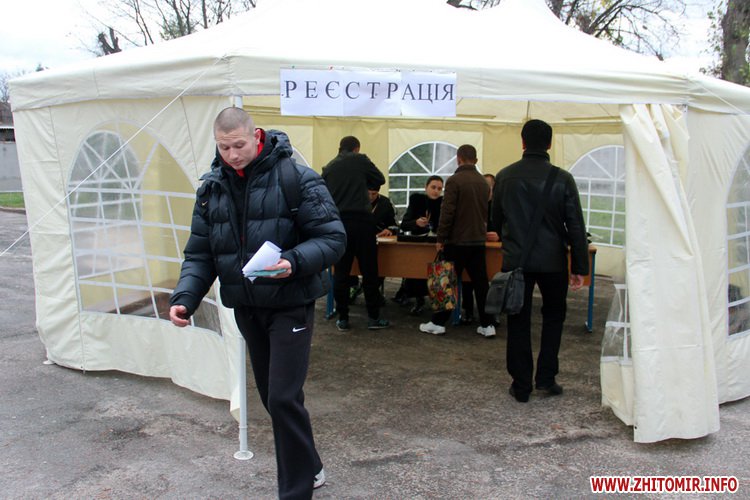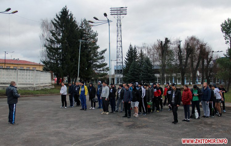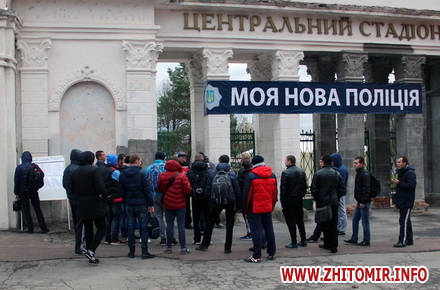 13 листопада на центральному стадіоні Житомира «Полісся» кандидати на службу у нову патрульну поліцію, які вже пройшли тестування на загальний рівень розвитку та військово-лікарську комісію, проходять тестування з фізичної підготовки.