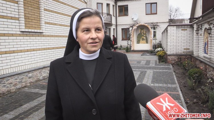 «В нас сьогодні відбувається освячення храму. Це є також 10-та річниця нашого перебування в Житомирі і ми також хотіли приурочити це свято якраз до 10-ї річниці. Було багато робити і ми спішили, щоб дійсно це свято звершилось. Михотіли зробити його влітку, але нам не вдалось. Але вийшло так, як вийшло. Ми насправді дякуємо Богу, і нам не віриться, бо справді багато труднощів, не легко будувати зараз, зважаючи на фінансовий стан держави. Тому, це якраз така визначна непересічна подія, бо такого часто не буває, ну і це перший греко-католицький храм в Житомирі», - розповідає сестра Маргарита.