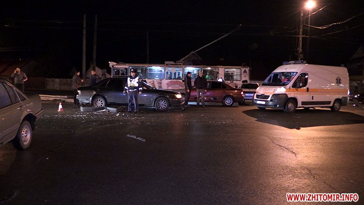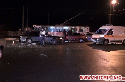 Ввечері 22 листопада в Житомирі, на повороті з проспекту Миру на вул. Максютова, зіштовхнулись три автомобілі.
