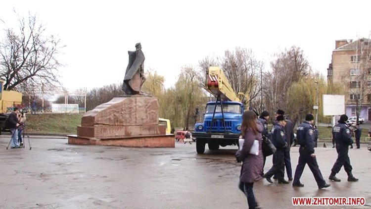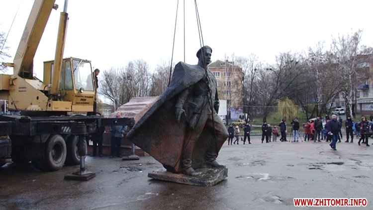Правоохоронці оточили територію довкола пам’ятника. Аби зрушити майже триметрову фігуру з бетону та металу знадобилося кілька хвилин. Цілим і неушкодженім пам’ятник зняли з постаменту. Подальша доля пам’ятника наразі невідома, на його місці місцеві патріоти пропонують встановити монумент героям 26-ї бригади.