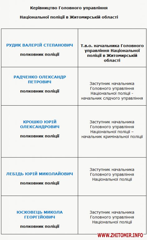 Керівники головного управління Національної поліції в Житомирській області станом на 24.11.2015