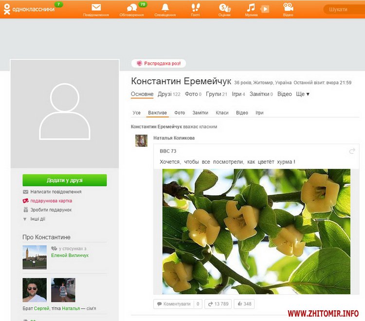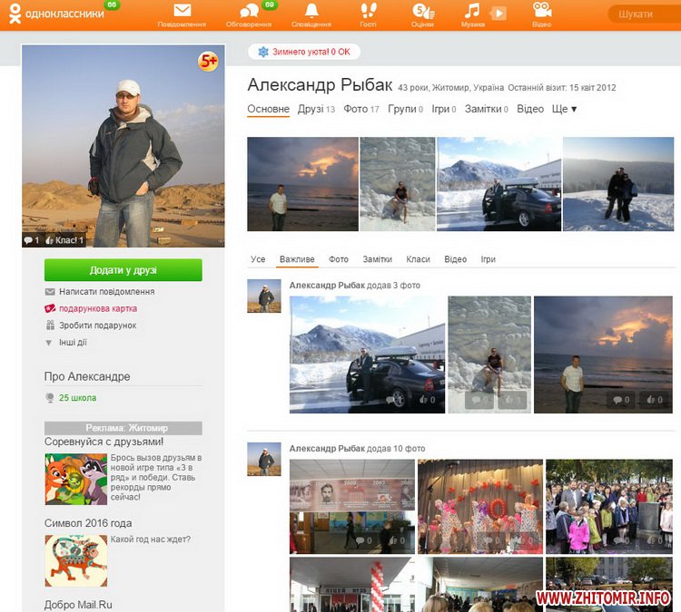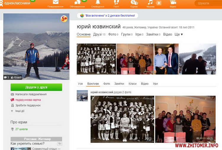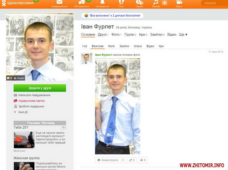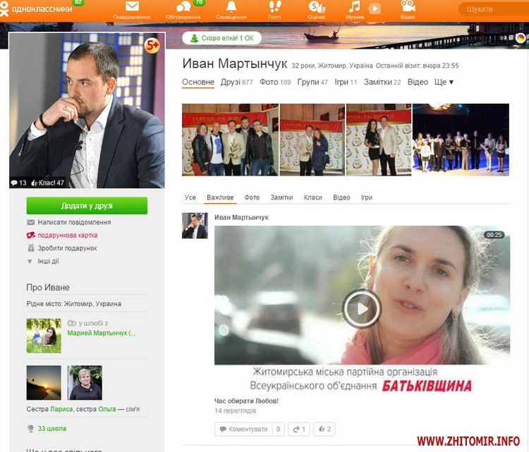Найбільше друзів в «Одноклассниках» в Івана Мартинчука– 877. Останній візит був 23 листопада о 23.55 год.