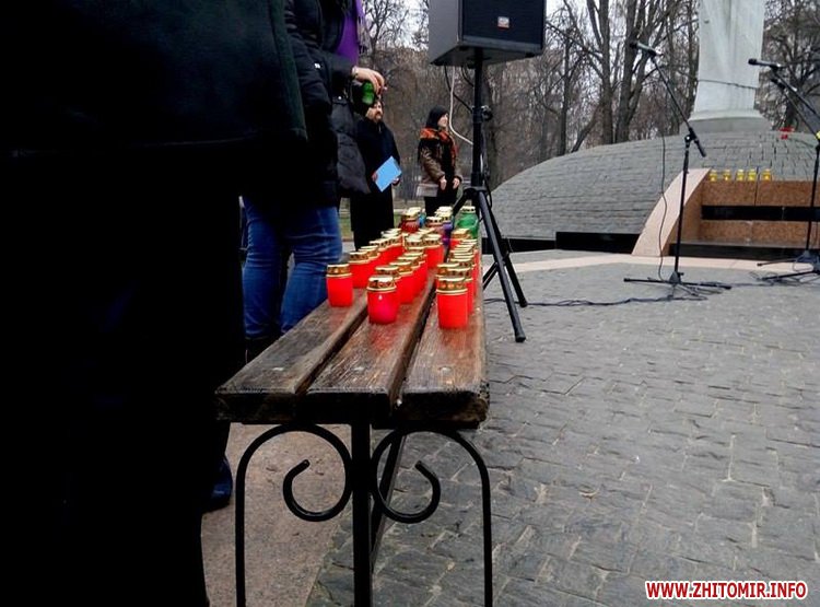 У Житомирі, 28 листопада, о 10.00 на майдані Путятинському, біля пам'ятника «Скорботний Янгол», зібралася понад сотня людей. Житомиряни принесли квіти, колоски та свічки, аби вшанувати тисячі загиблих у роки Голодоморів.