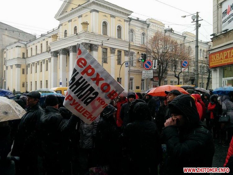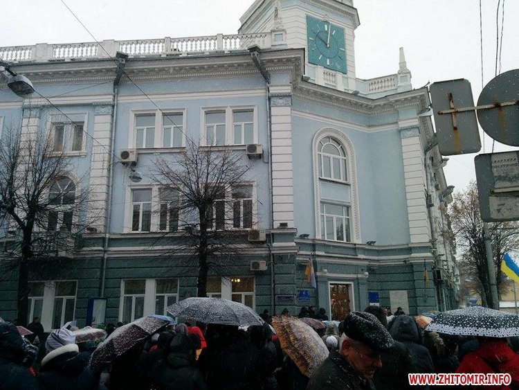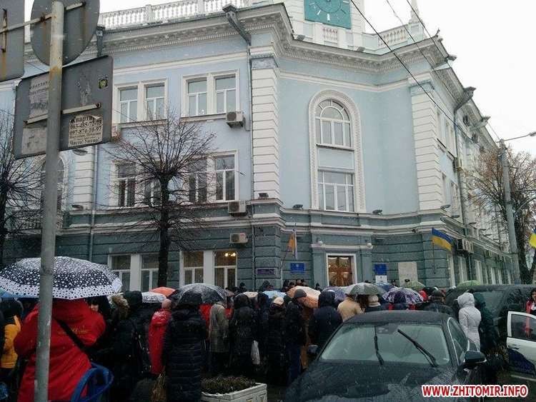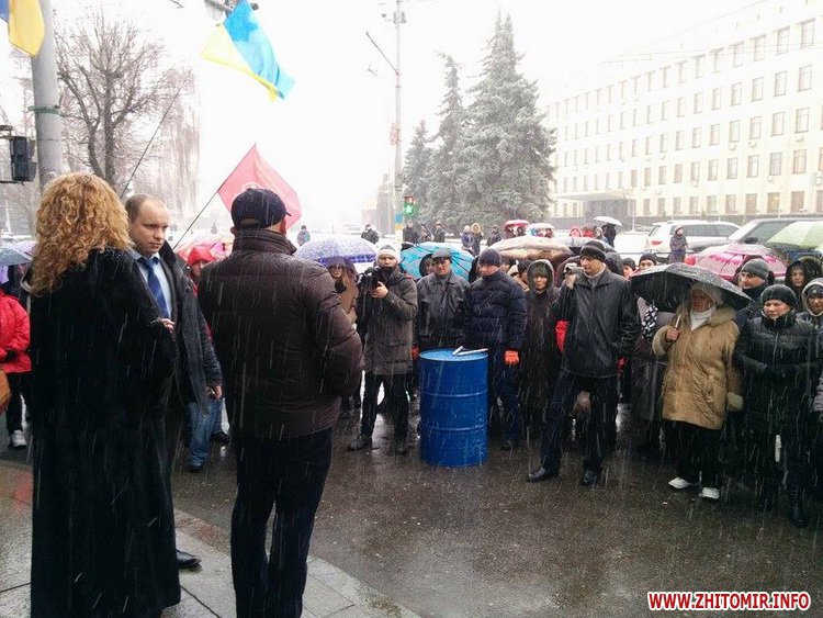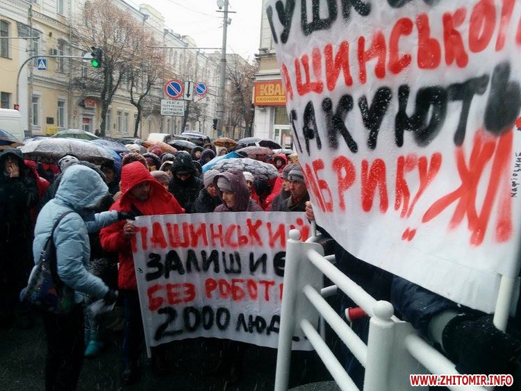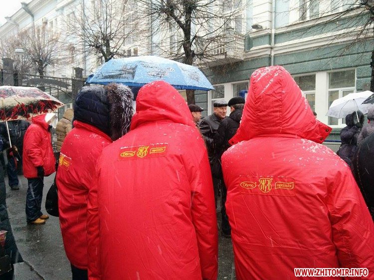 Утром 1 декабря работники Житомирской кондитерской фабрики «ЖЛ» во главе с председателем наблюдательного совета предприятия Игорем Бойко пришли к мэрии.