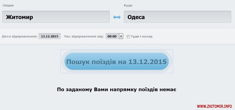 З 13 грудня 2015 року з Житомира до Одеси буде курсувати прямий нічний потяг.