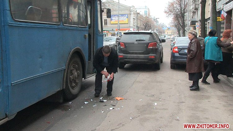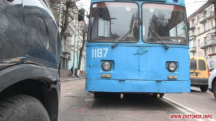 Днем 4 декабря в Житомире, на ул.Большая Бердичевская, троллейбус зацепил автомобиль Kia Sorento.