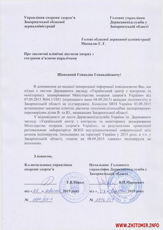 «В вересні на Закарпатті було діагностовано захворювання поліомієлітом у двох дітей. І враховуючи цю ситуацію, те, що дуже низький рівень охоплення плановою вакцинацією проти поліомієліту, було прийнято рішення провести додатково щеплення проти поліомієліту дітям від двох місяців до шести років»,- пояснює начальник відділу мобілізаційної роботи та спеціальних питань управління охорони здоров’я Житомирської ОДА Сергій Березовський.