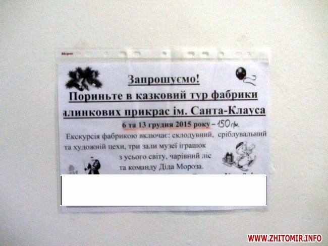 Крім того, нерідко батьки домовляються про «новорічну» екскурсію на фабрику ялинкових прикрас під Києвом. Коштує це щонайменше 150 гривень на одну особу.