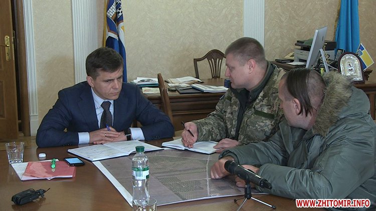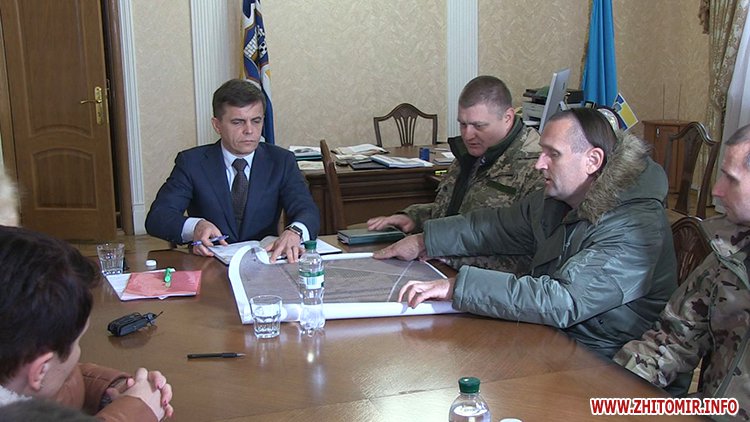 Вирішувати питання з виділенням земельних ділянок в межах міста активісти рушили до Житомирського міського голови. Бійці скаржилися на затримки та засміченість земельних ділянок. Сергій Сухомлин пояснив: мешкаючи у приватному секторі, житомиряни не заключають угоди на вивезення сміття і самі створюють стихійні звалища. Поки це питання вирішується, міський голова запропонував залучитися допомогою громадськості та влаштувати суботник.