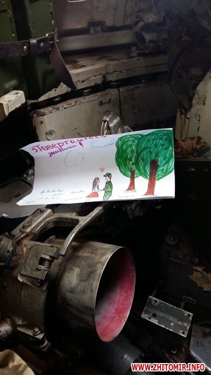 Особливістю цієї поїздки у зону проведення АТО стало те, що везли з собою особливу «передачу» - привітання від школярів Житомирської школи №6. Щирі листи, побажання та малюнки, написані дітьми додали сердечного тепла та зігріли душі бійцям.