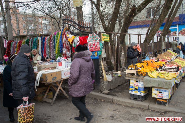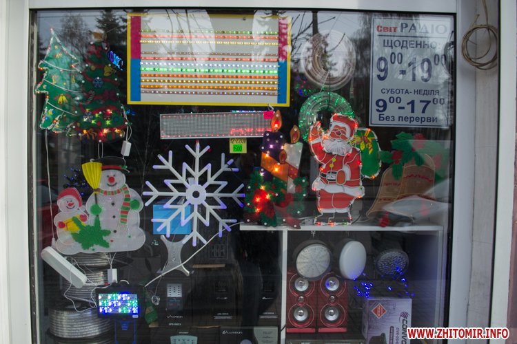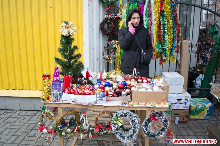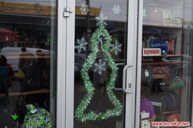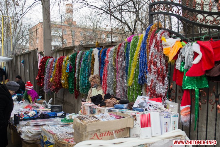 Крамниці, установи та ринки Житомира готуються до Нового року. Будівлі прикрашені гірляндами, сніжинками та святковою ілюмінацією, а на ринках повним ходом продають новорічні атрибути. Люди вибирають подарунки та готують сюрпризи. Не вистачає лише снігу.